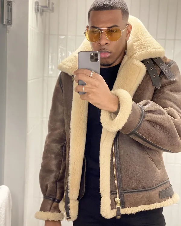 This is the perfect Shearling jacket—beautiful material, and the zippers are both stylish and comfortable. I’m a (115 lbs), and Brown the XS was a bit snug, the size small fits perfectly—snug but just right. In my opinion, it’s best to go one size up from your usual for the ideal fit.