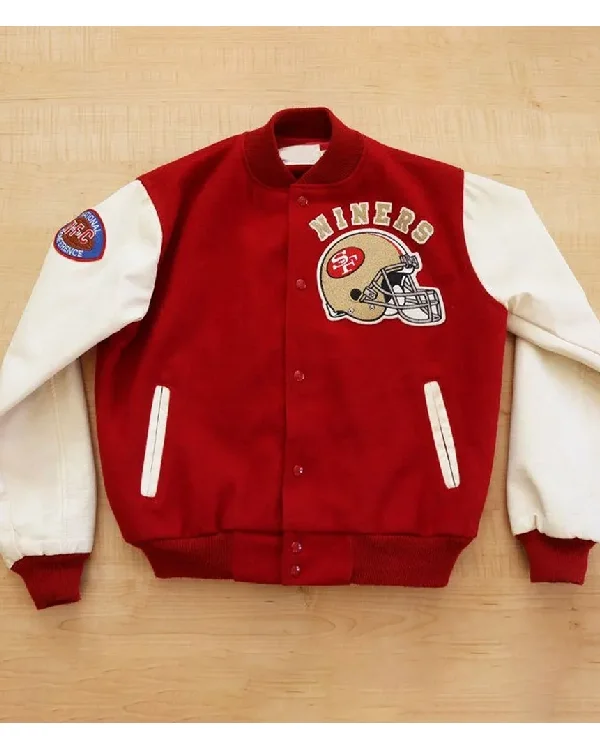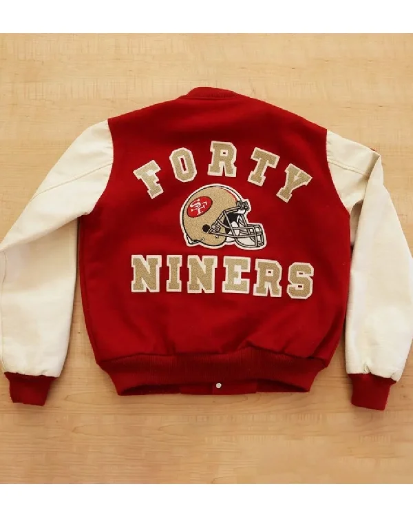 Shop San Francisco 49ers 80’s Red/Off White Varsity Wool/Leather Jacket Sale