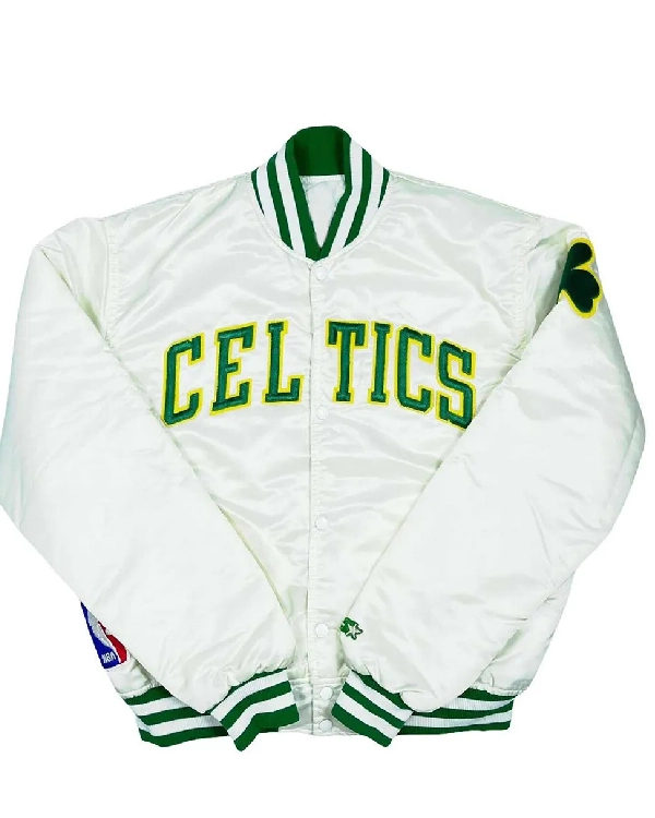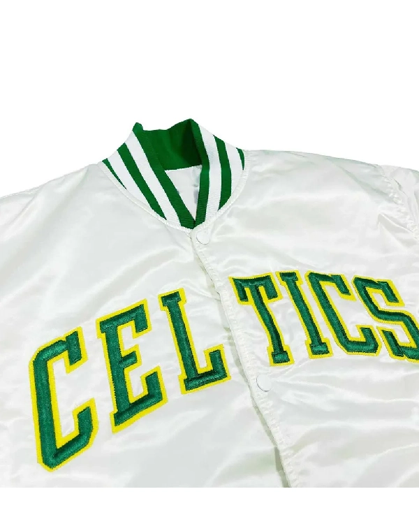Sale Boston Celtics 90s Full-Snap Bomber White Satin Jacket Sale
