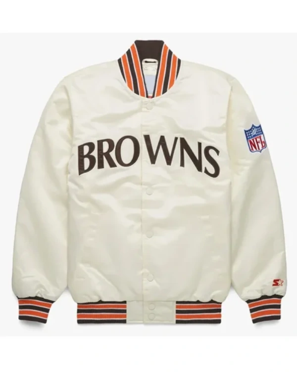 Buy Starter Bomber Cleveland Browns 90’s White Satin Full-Snap Jacket