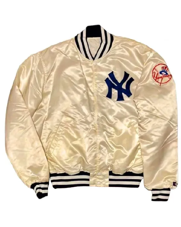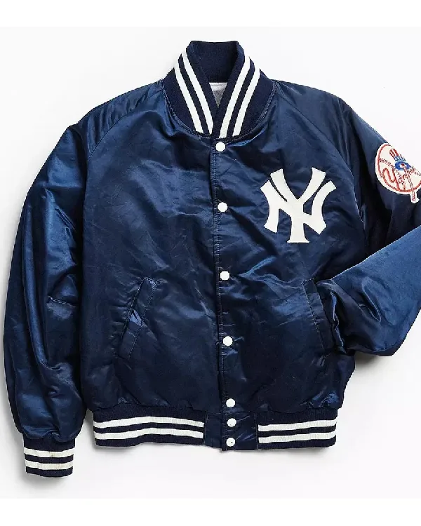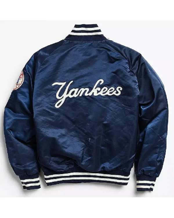 Buy New York Yankees 90s Blue and White Satin Bomber Jacket For Sale