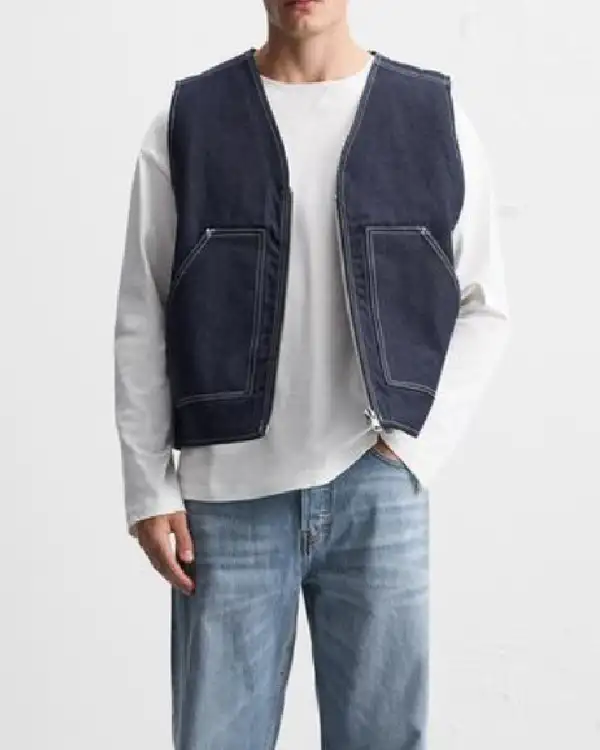 Buy Access Daily 2025 Scott Evans Blue Denim Zip Vest Sale