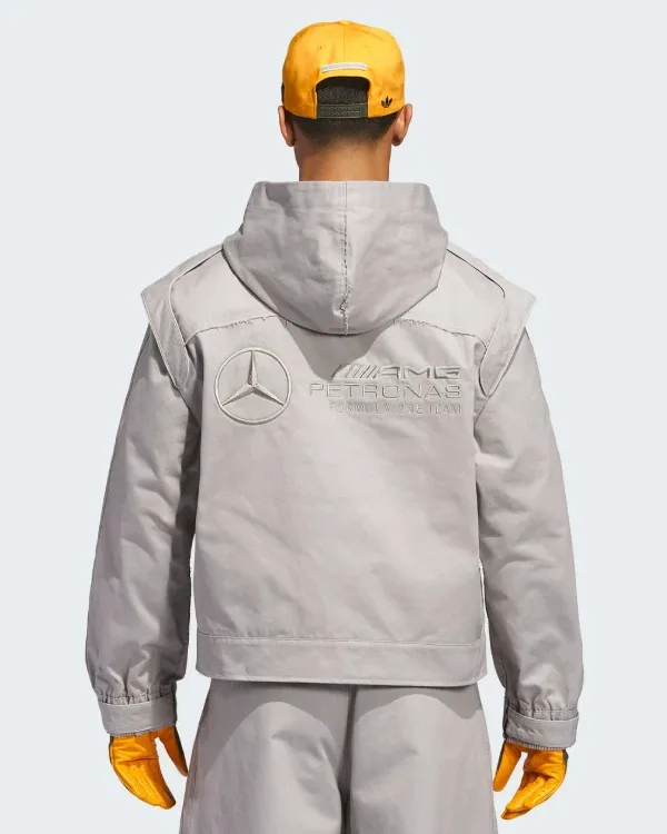 Buy Adidas para Bad Bunny x Mercedes-AMG F1 Racing Zip Up Track Top with Balaclava Grey Jacket For Sale