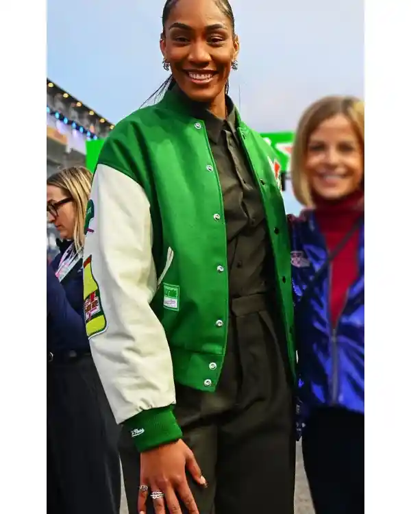 Order Recreation – A’ja Wilson Gatorade Green & White Varsity Jacket Sale