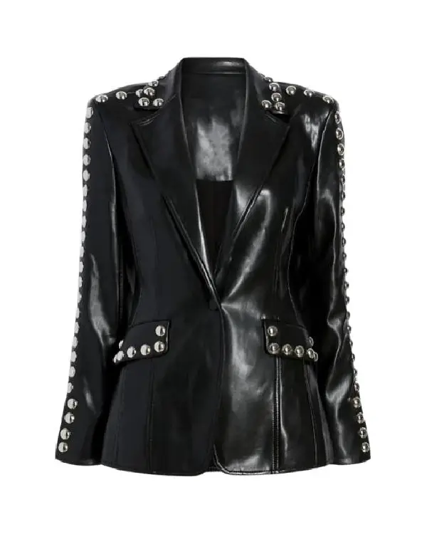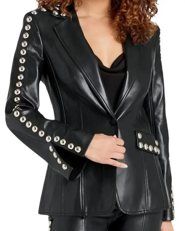 America’s Sweethearts Dallas Cowboys Cheerleaders Season 2 Judy Trammell Black Leather Studded Sleeve Blazer