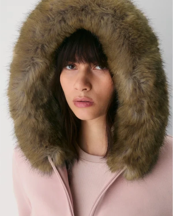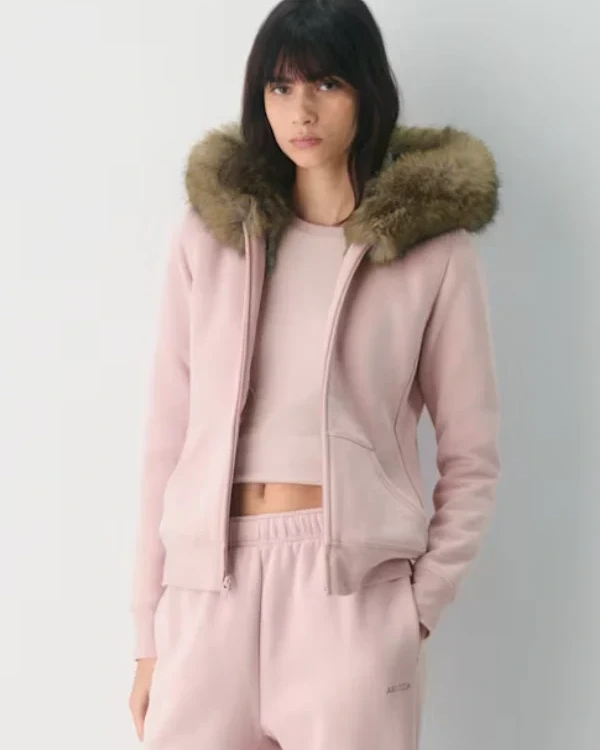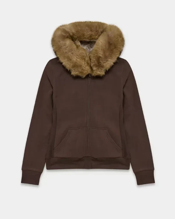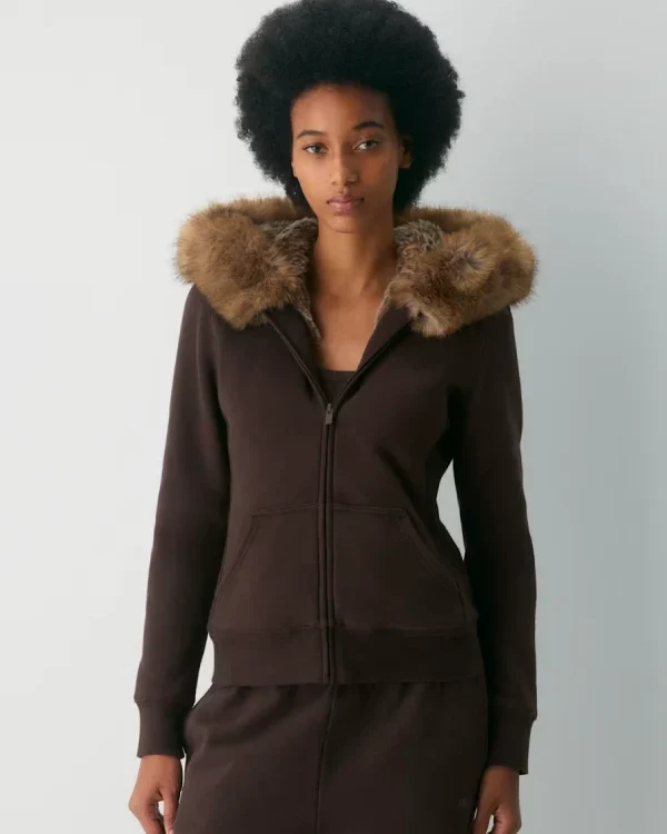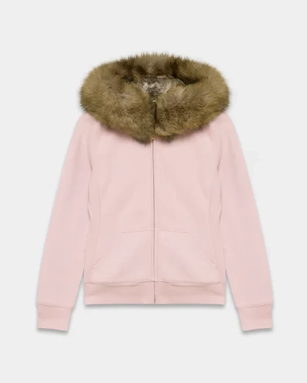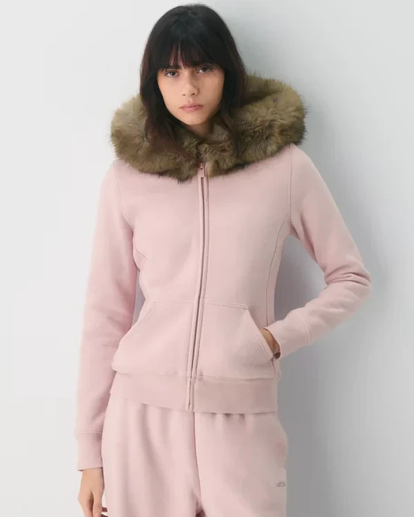 Buy Recreated – Aritzia Snug Fleece Zip-Up Hoodie with Real Faux Fur Trim Hoodie Sale