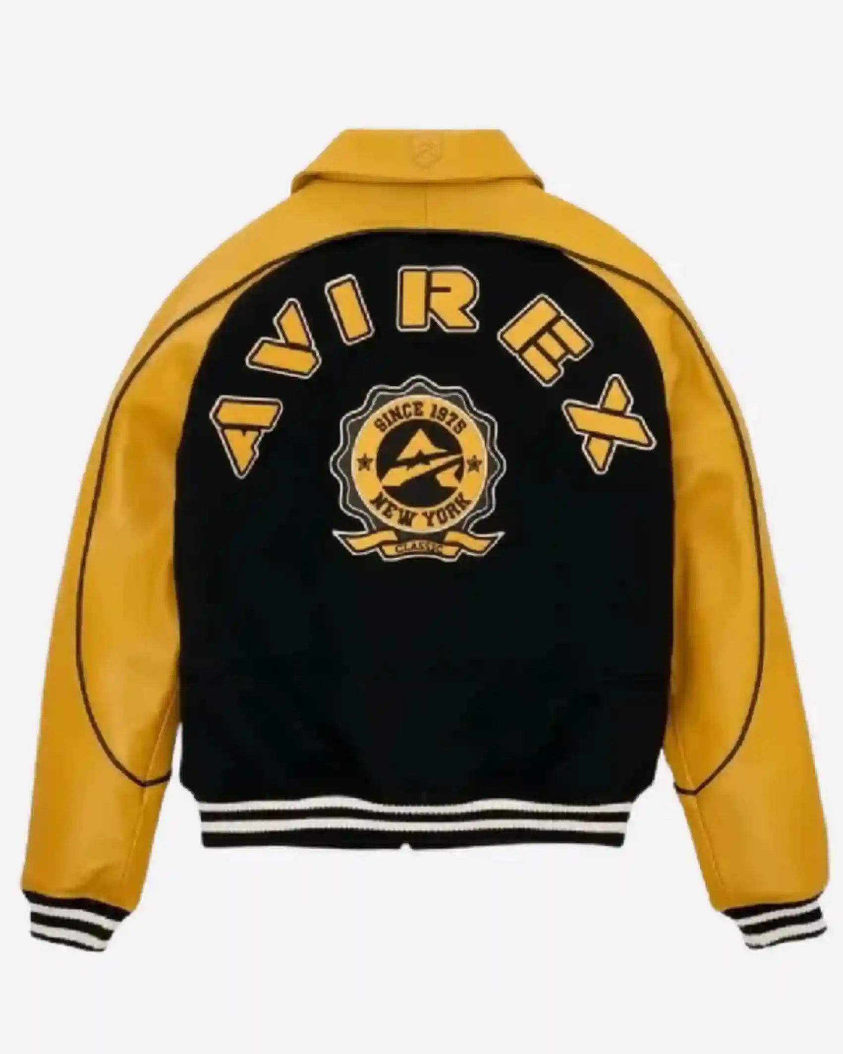 Shop Avirex Classic Wool Black & Gold Leather Varsity Jacket Sale