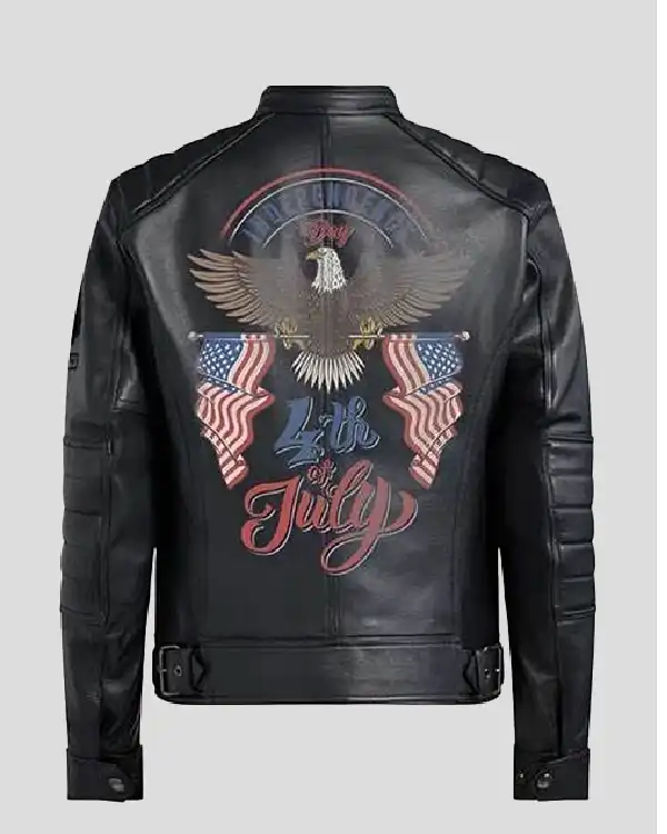 Shop Bald Eagle USA Flag Printed Independence Day Black Leather Jacket For Sale