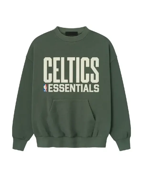 Boston Celtics NBA ESSENTIALS Shamrock Logo & Off-White Print Green Crewneck Sweatshirt