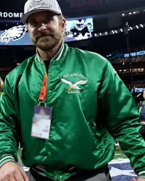 Bradley Cooper 2025 Super Bowl LIX Green Satin Jacket