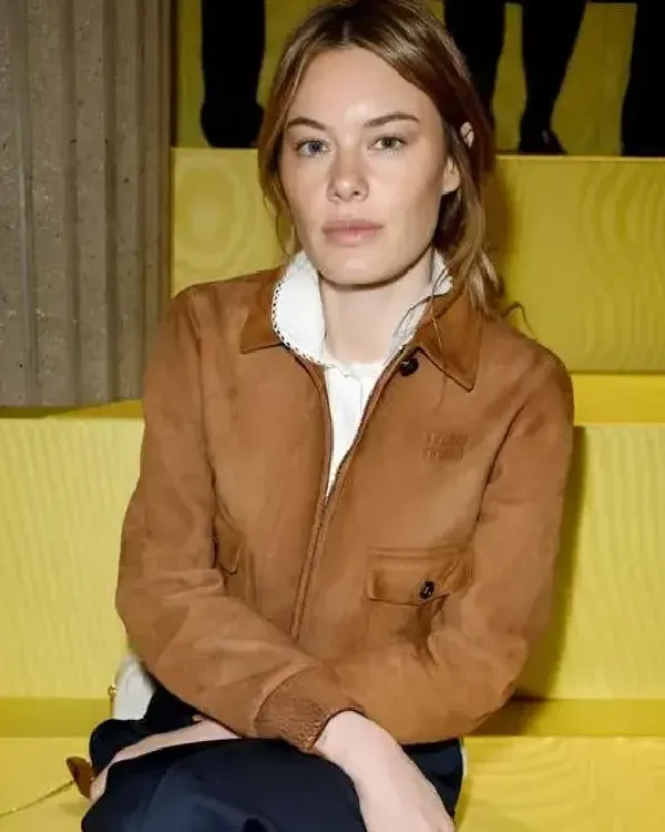 Buy Paris Fashion Week 2025 Camille Rowe Brown Suede Leather Jacket Sale