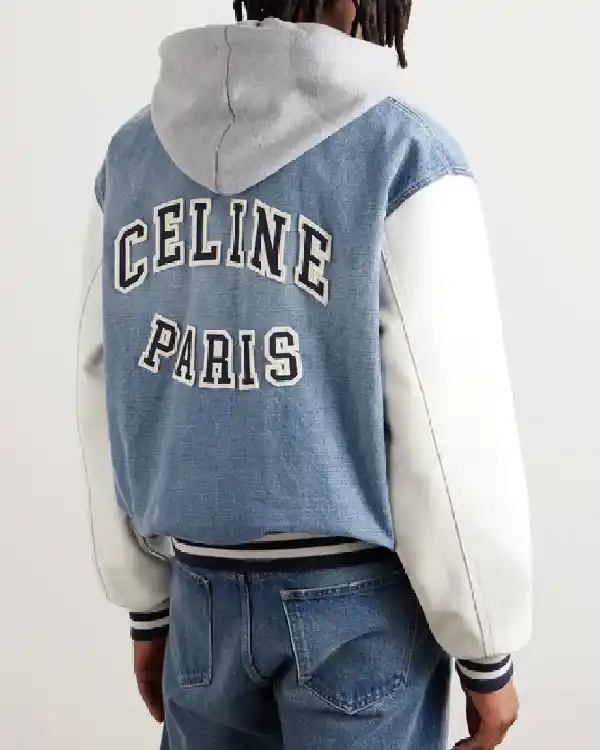Celine Homme Teddy Logo Appliquéd Denim Hooded