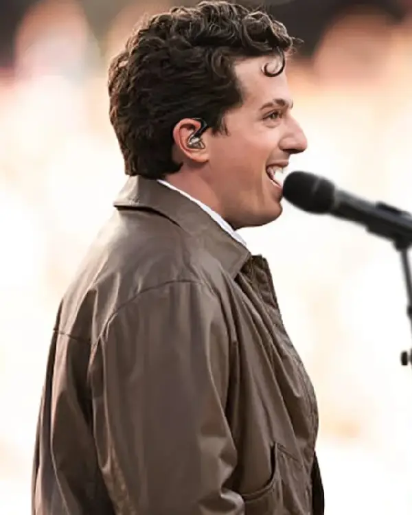 Recreation – Super Bowl LX 2026 Charlie Puth Brown Leather Jacket For Sale