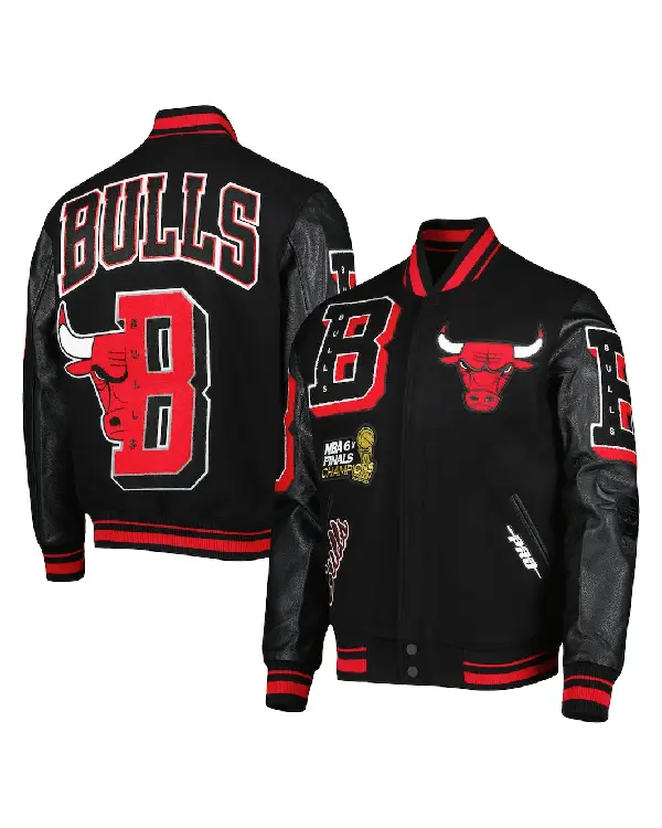 Six-time Final Champions Chicago Bulls Mashup Black Varsity Jacket