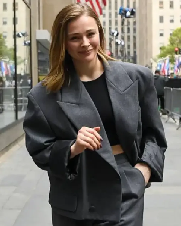 Buy Chloe Grace Moretz NBC Studio NYC 2025 Oversized Grey Blazer For Sale