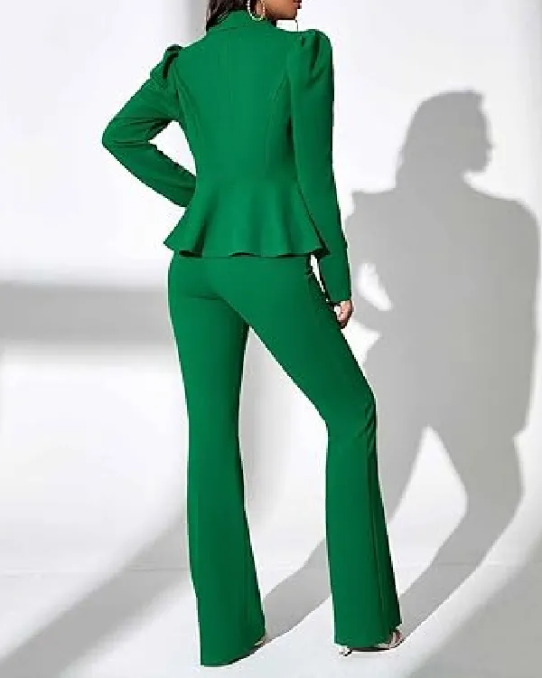 Women’s Christmas Casual Office Uniform Notch Lapel Jacket with Pants Suit