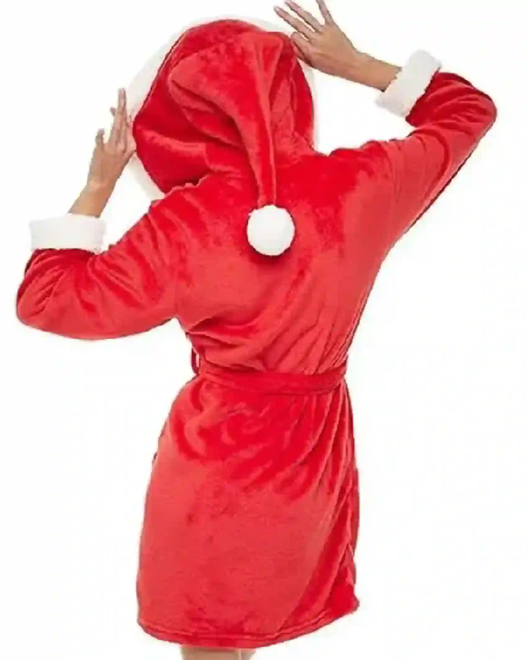 Christmas Red Velvet Robe with Hooded Pompom Hat for Women