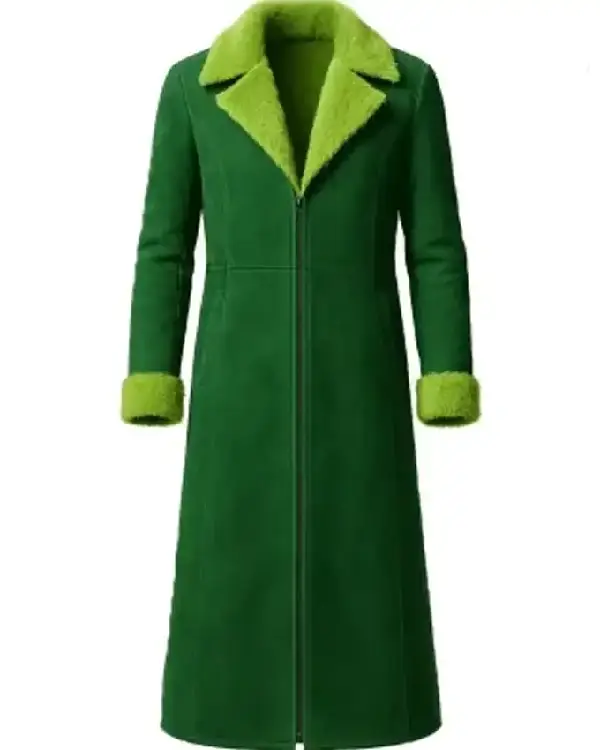 Christmas The Grinch Green Suede Leather Shearling Coat for Men and Women