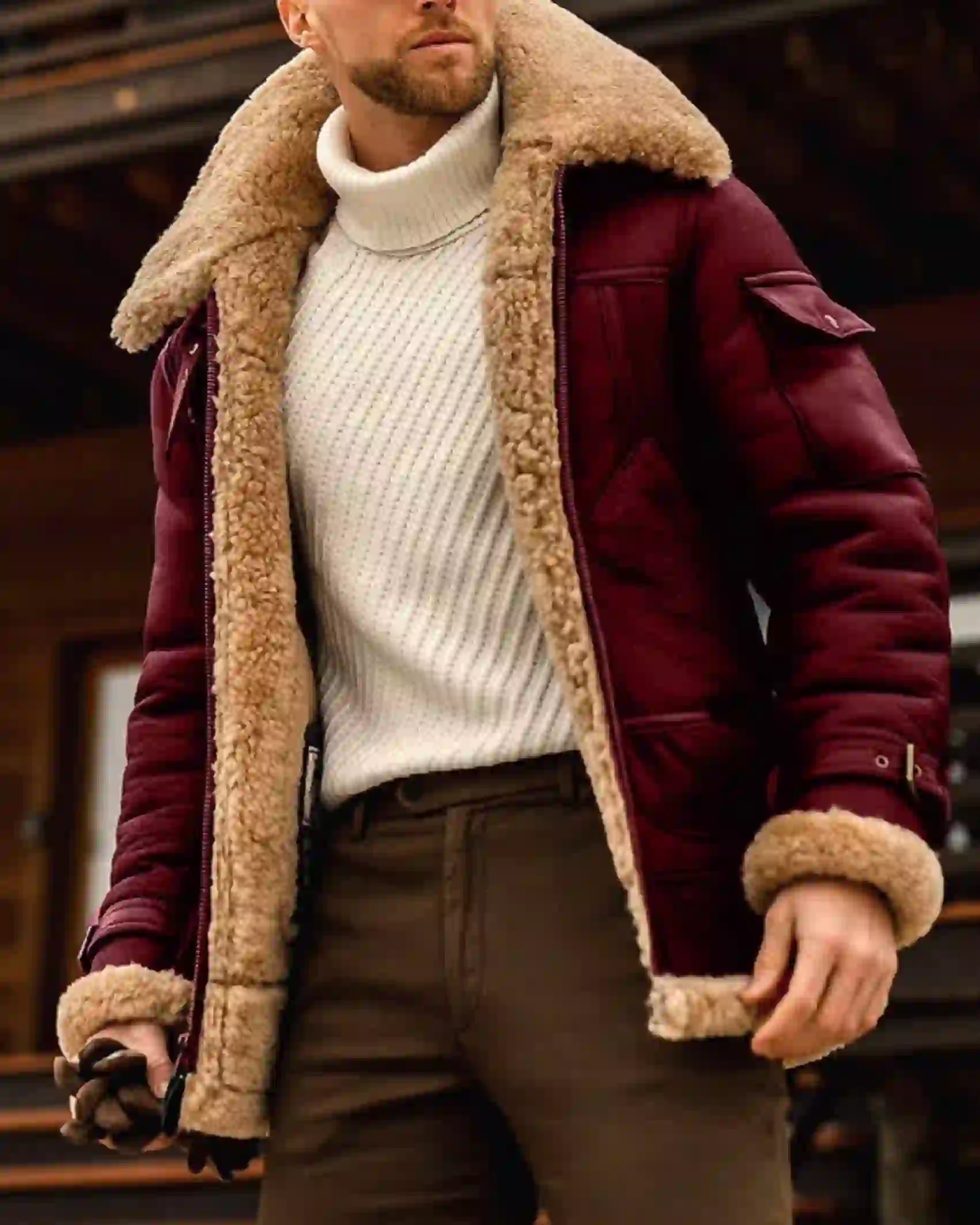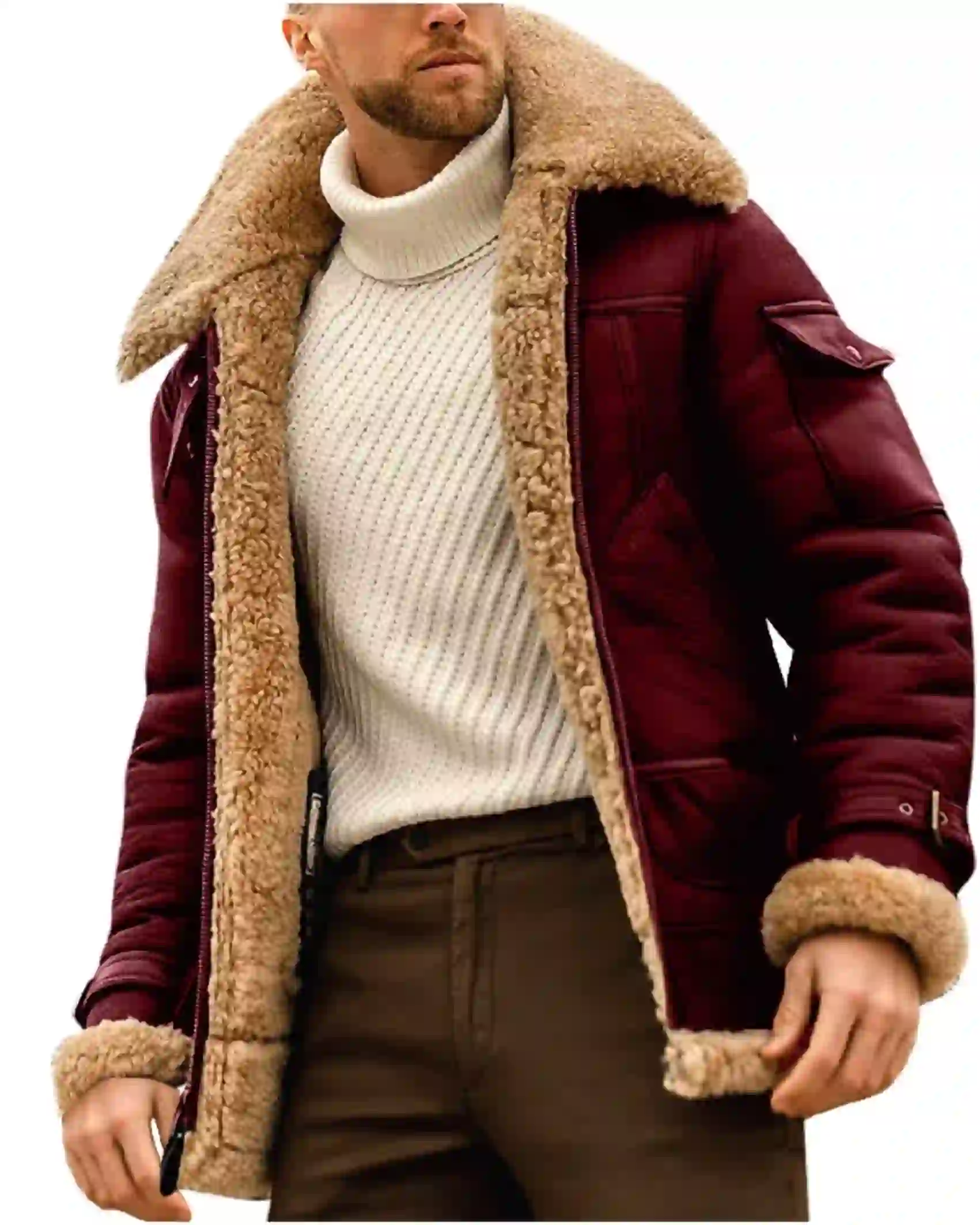 Voncos Winter Coat for Men Warm Faux Fur Coat Outerwear Christmas Jacket Suede Jackets