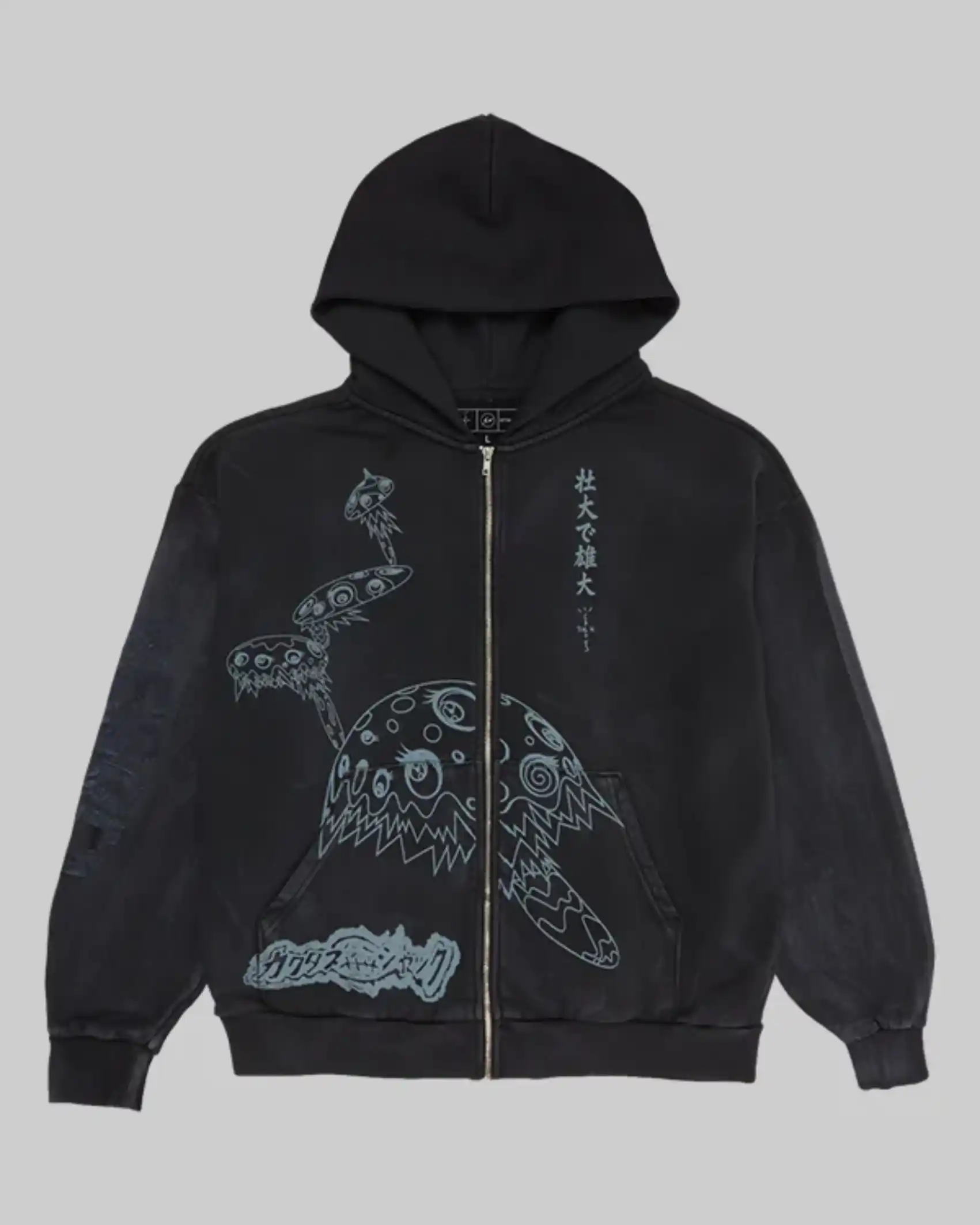Shop CJ – Cactus Jack X Fragment X Takashi Murakami Reborn Black Zip-Up Hoodie Sale