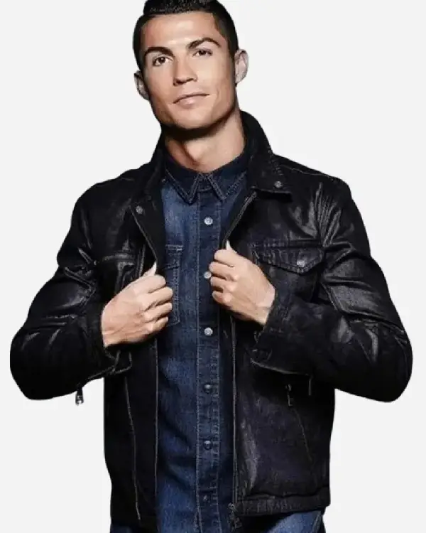 Cristiano Ronaldo Black Leather Jacket