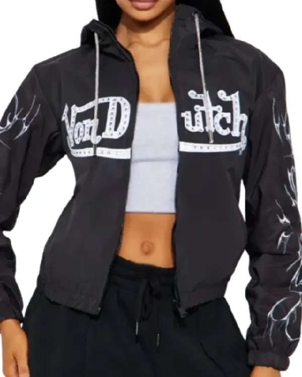 Buy Crystal Heart Black Windbreaker Hooded Jacket