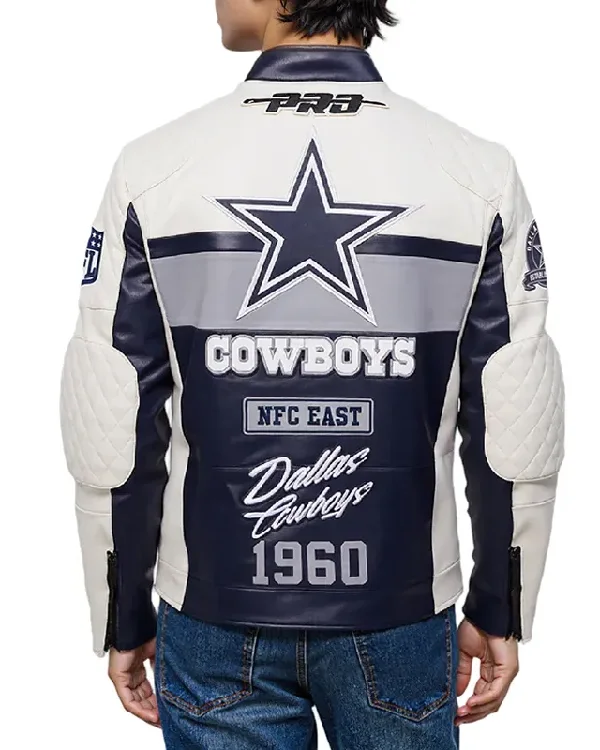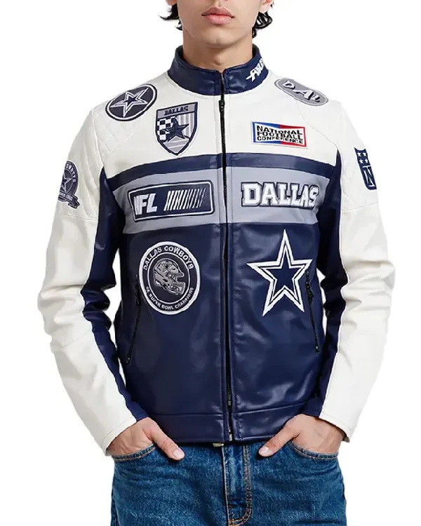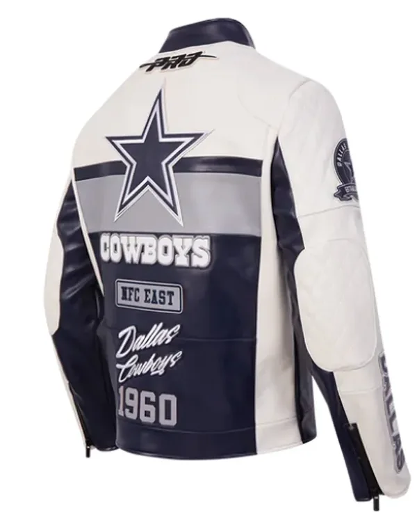 Dallas Cowboys Moto Navy and White Leather Jacket