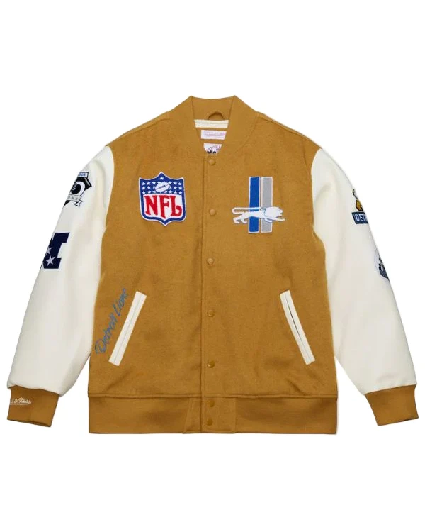 Recreation – Buy NFL Detroit Lions Mitchell & Ness Brown/White Dusted Full-Snap Varsity Jacket