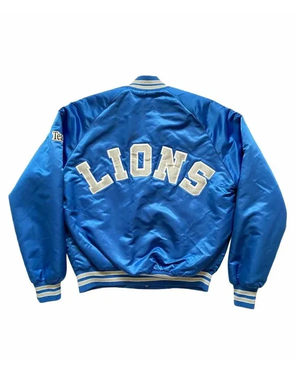 Buy Detroit Lions 80s Blue Satin Bomber Jacket