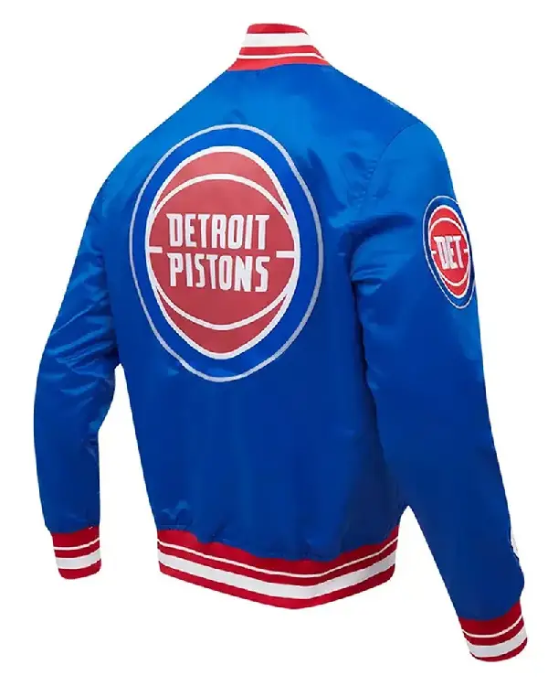 - Logo: Detroit Pistons logo on the front, sleeve, and back