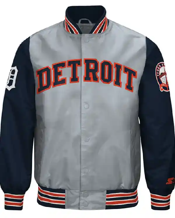 Detroit Tigers Navy and Gray Varsity Satin Jacket