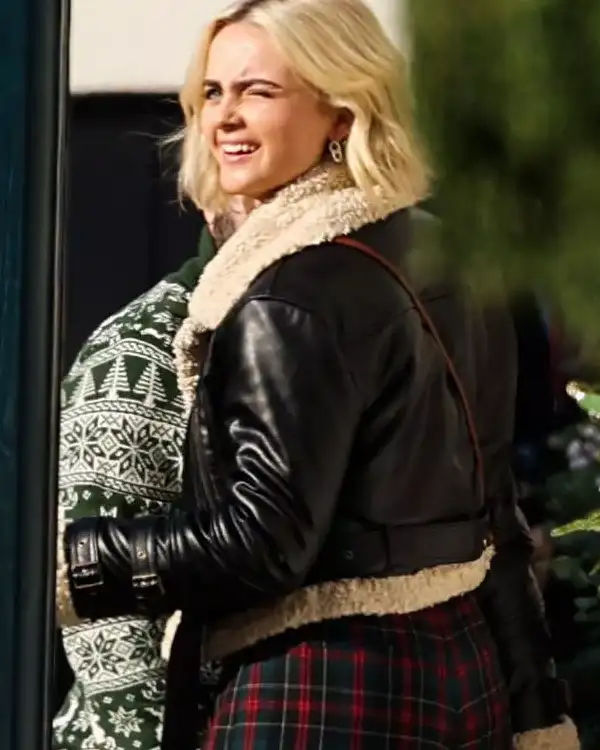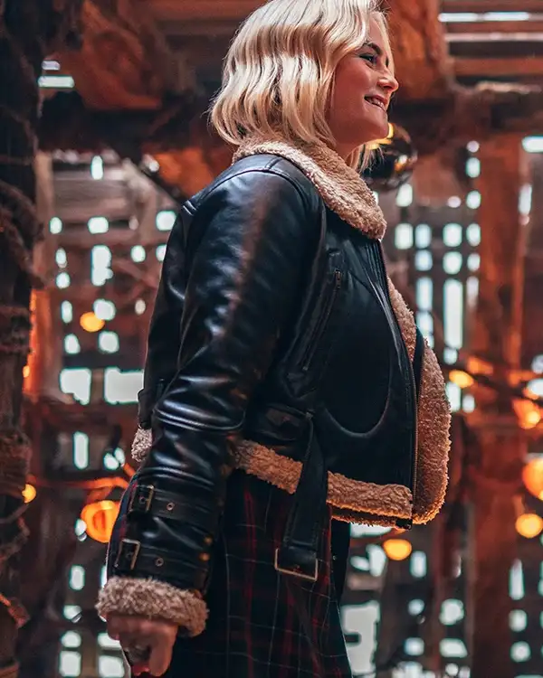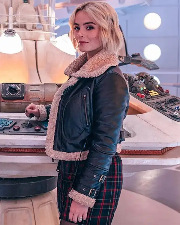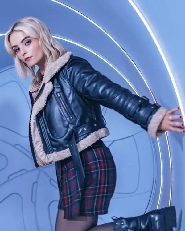 Order Ruby Sunday Doctor Who S14 Millie Gibson Black Leather Shearling Jacket For Sale