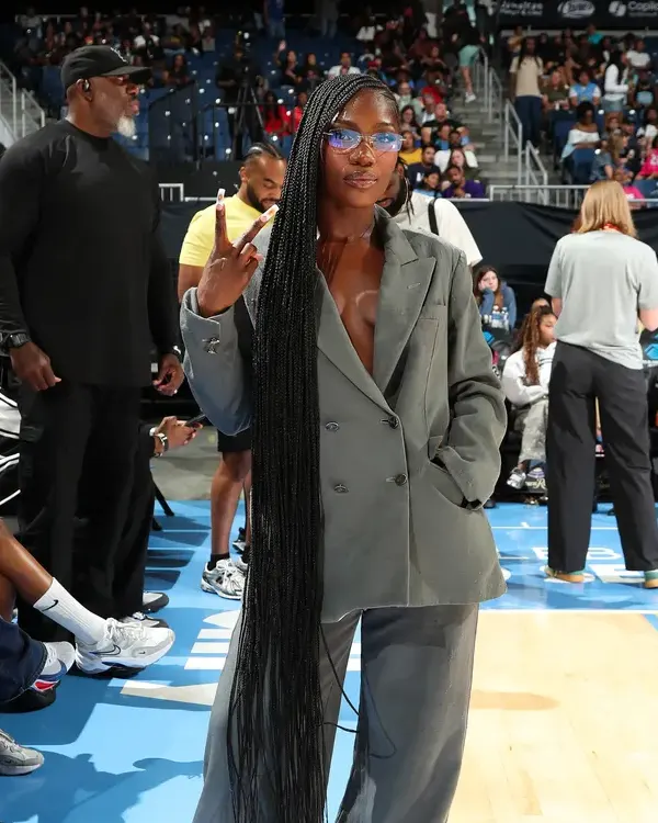 Shop Doechii Grey Double-Breasted Blazer Gary Dineen NBA Sale