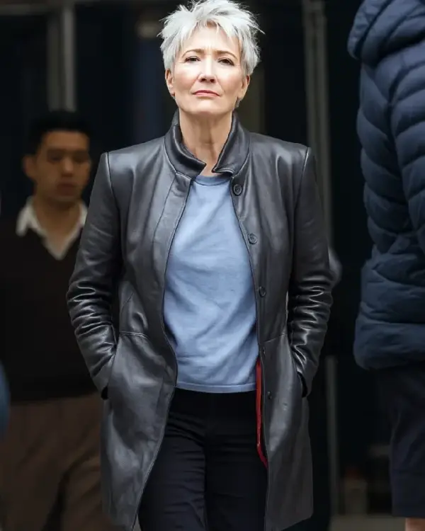 Shop Emma Thompson Down Cemetery Road Zoë Boehm Black Leather Trench Coat Sale