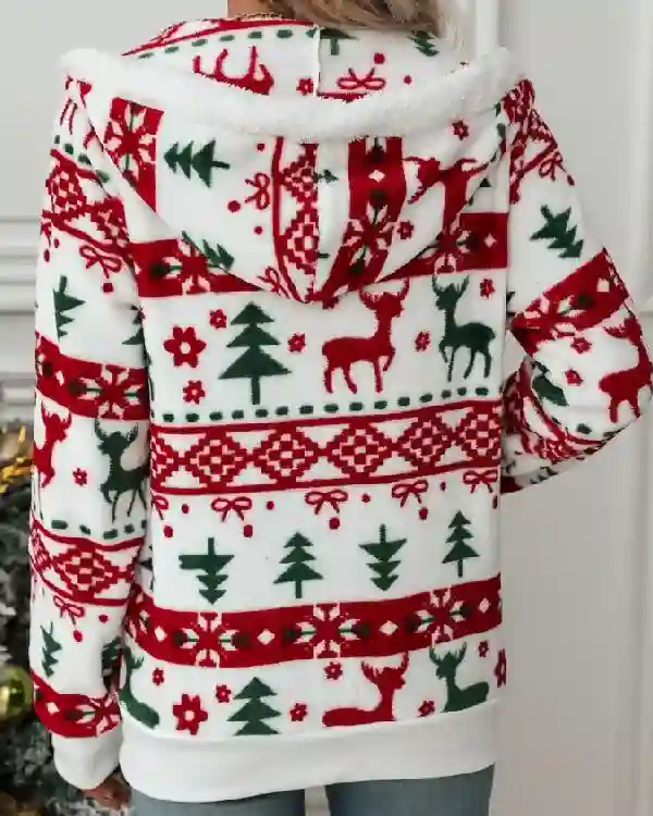 Christmas 2025 Drawstring Element Printed Zip Up Hooded Jacket