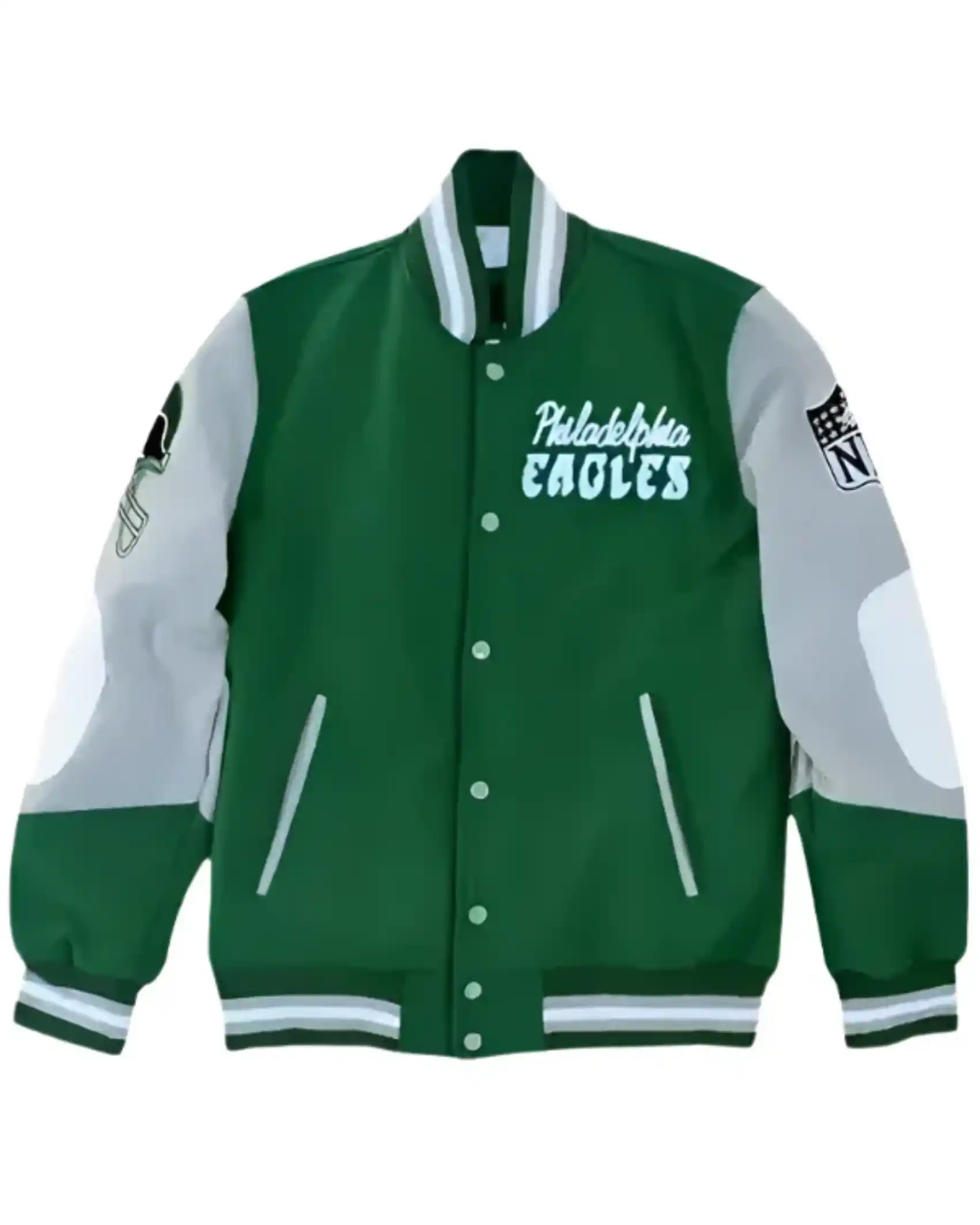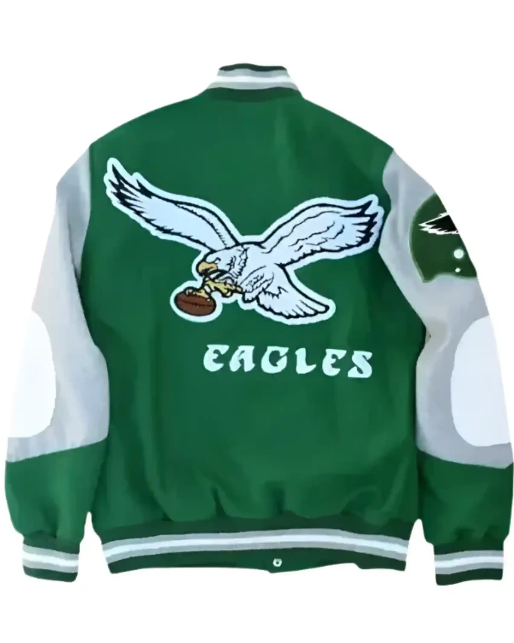 90s Philadelphia Green and Grey Eagles Varsity Jacket