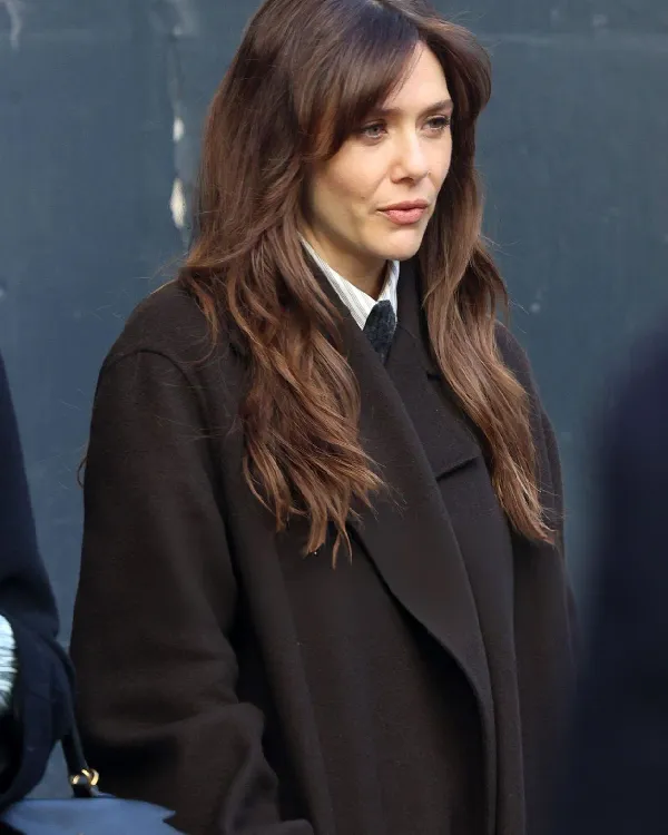 Buy Elizabeth Olsen Heart Breakfast Radio Studios Long Dark Brown Coat