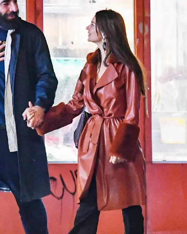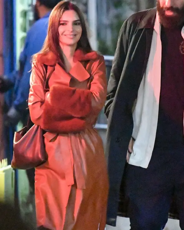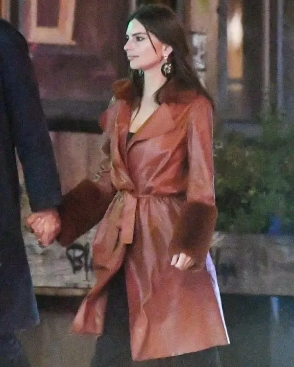 Buy Emily Ratajkowski New York City Ong Brown Leather Coat