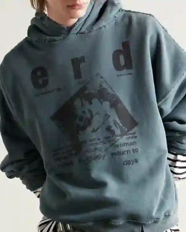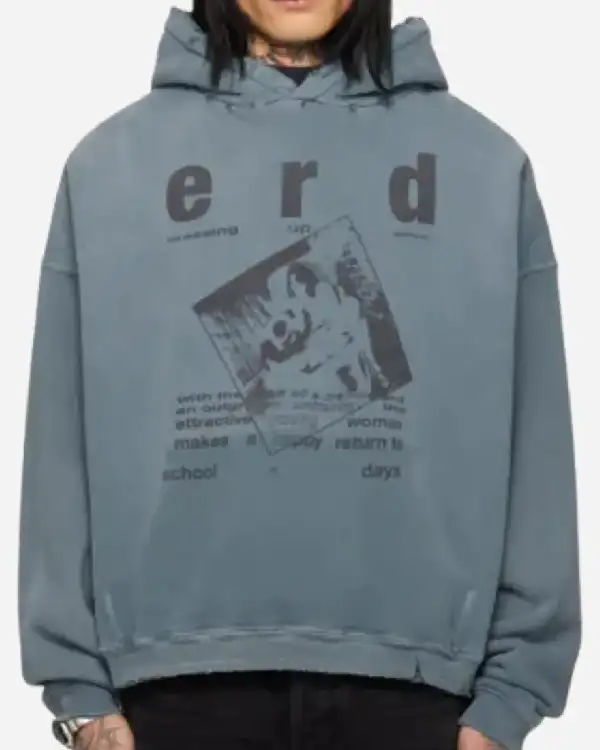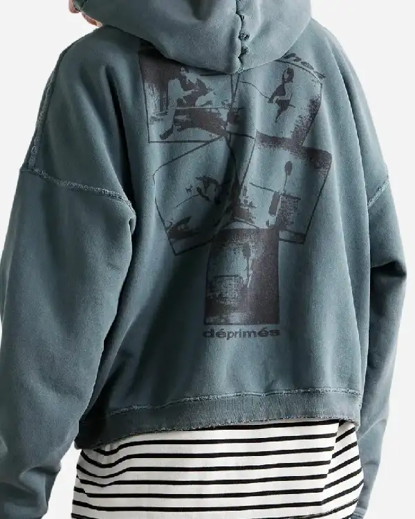 Shop Enfants Riches Déprimés – School Days Distressed Printed Blue Cotton Jersey Hoodie Sale