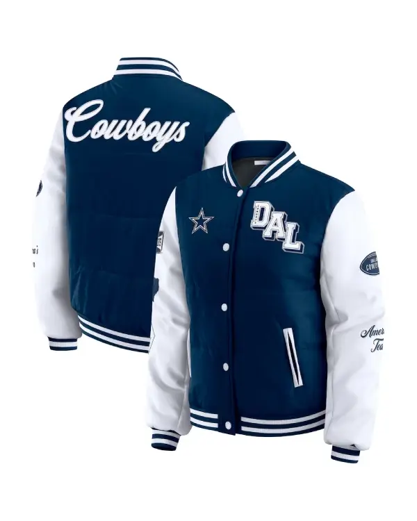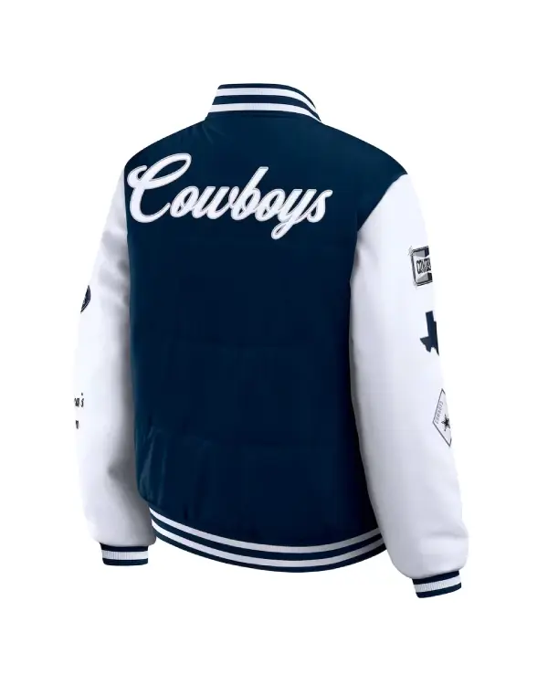 Recreation – Women’s Dallas Cowboys WEAR by Erin Andrews Navy Varsity Full-Snap Puffer Jacket