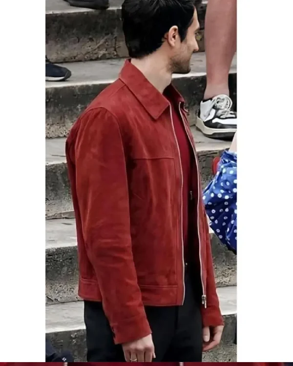 Buy Emily in Paris Season 4 Marcello Eugenio Franceschini Red Suede Leather Jacket