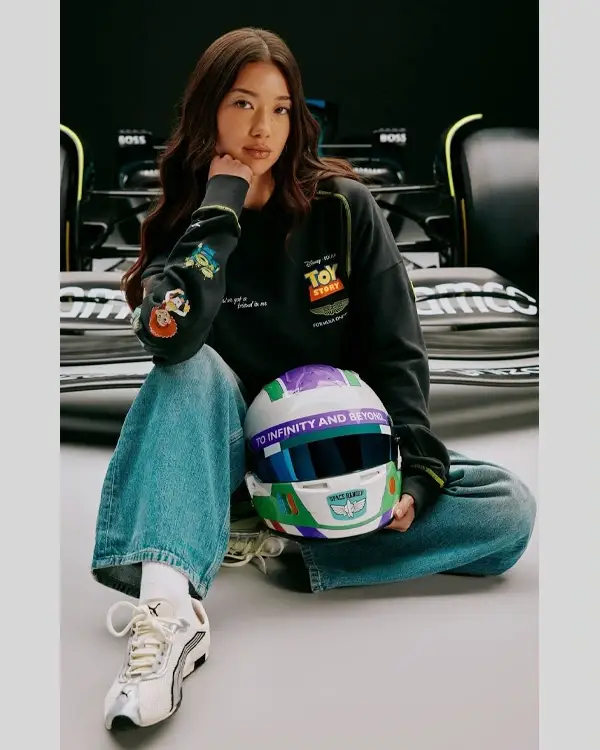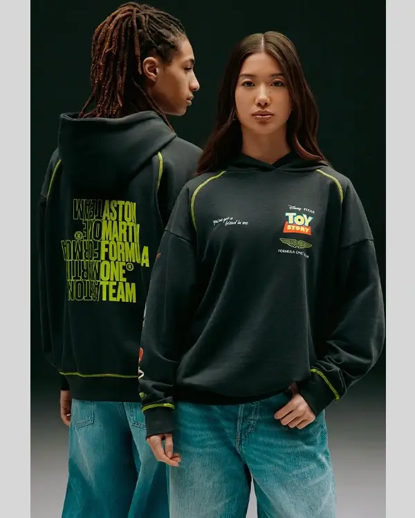 Buy Re-Creation – Unisex Formula 1 Aston Martin X Toy Story Black Hoodie Sweatshirt Sale