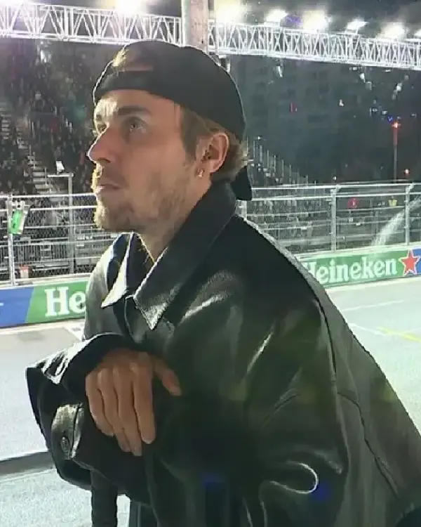 Buy Justin Bieber F1 Las Vegas Grand Prix Oversized Black Leather Jacket For Men Sale