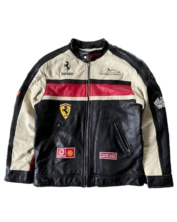Buy Vintage Leather Black and Red Ferrari F1 Racing Motorcycle Jacket