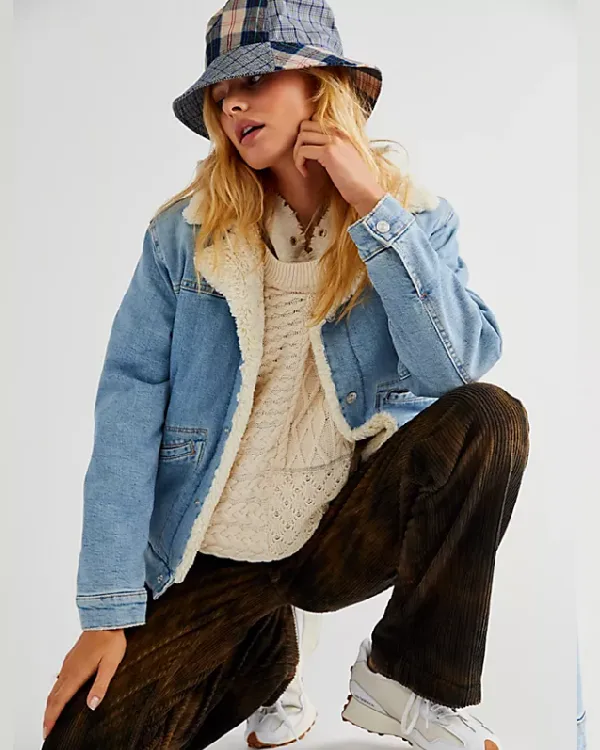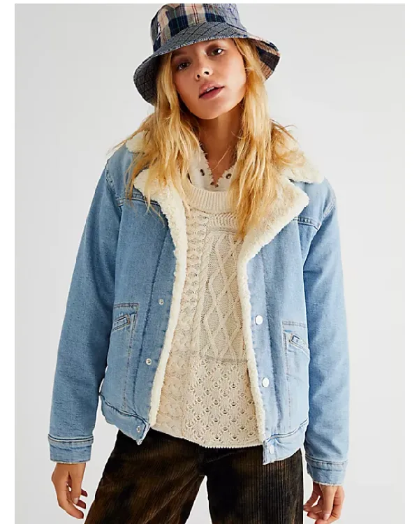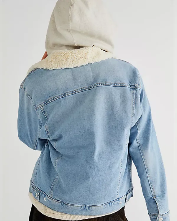 Order Free People Off-the-Grind Blue Denim Sherpa Jacket Sale