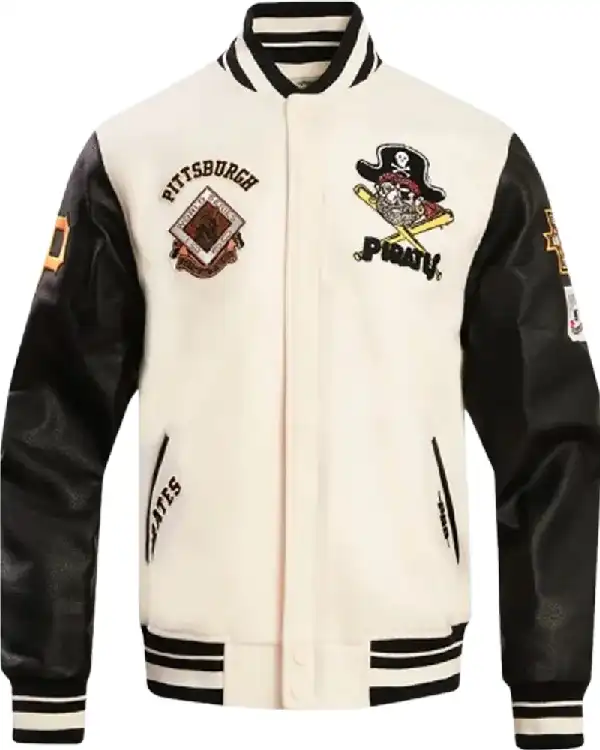 Shop Pittsburgh Pirates Logo Mash Up Varsity Wool and Leather Jacket Sale