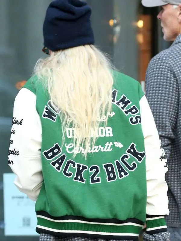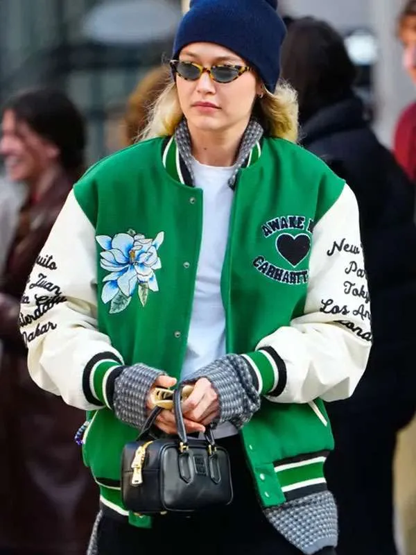 Order Carhartt Gigi Hadid Green and White Varsity Bomber Jacket Sale