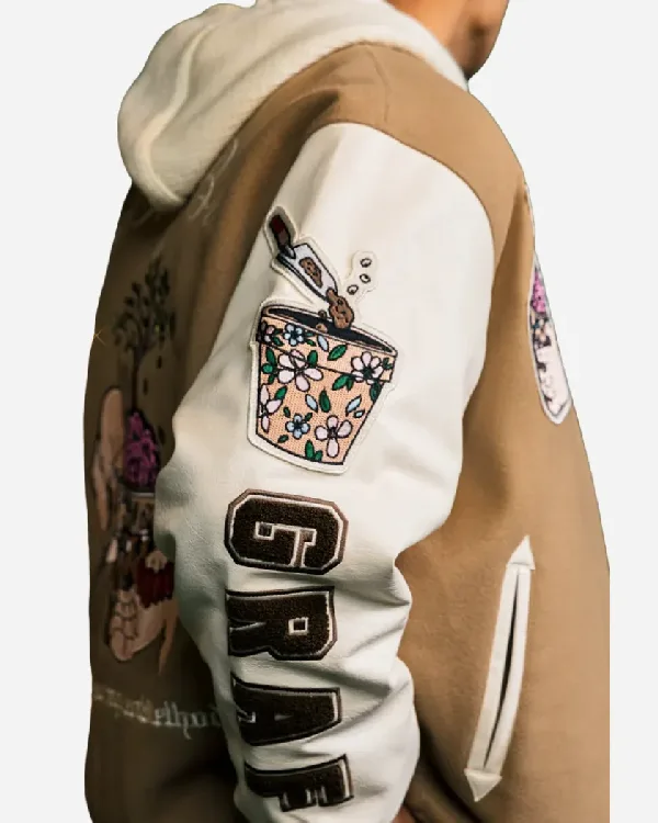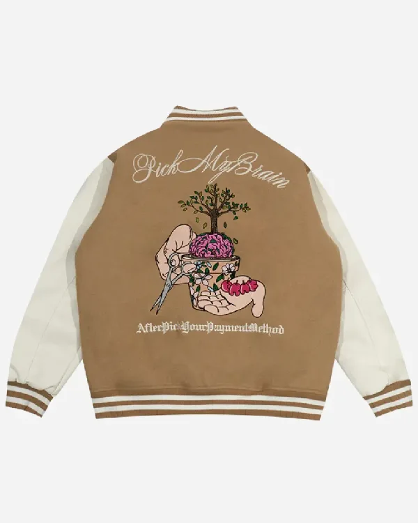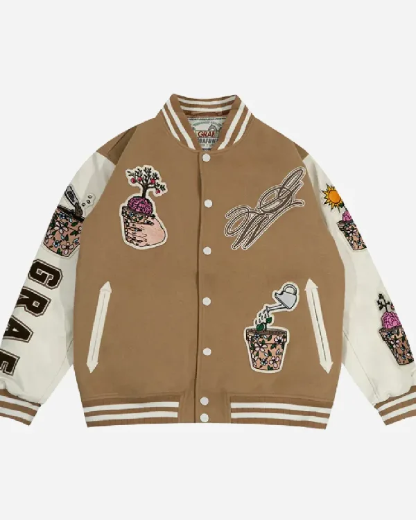 Shop GRAF&WU Brainpower Potted Plant Brown Leather Sleeves Baseball Jacket Sale