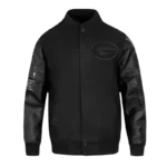 Green Bay Packers Triple Black Varsity Wool-Leather Jacket