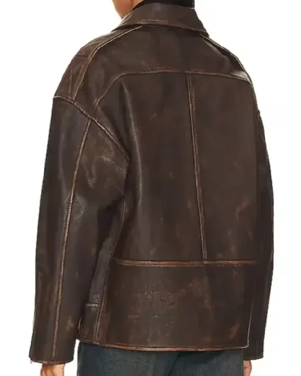 Buy GRLFRND Alek Distressed Brown Leather Jacket Sale